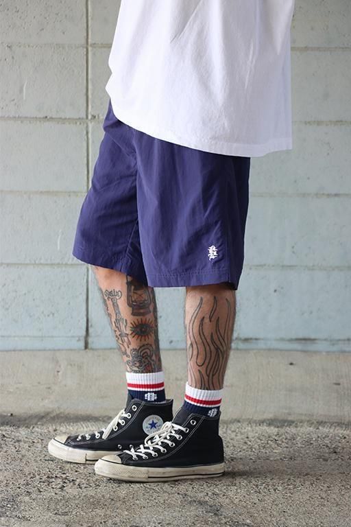 夏場に重宝するナイロン素材のイージーショーツ。